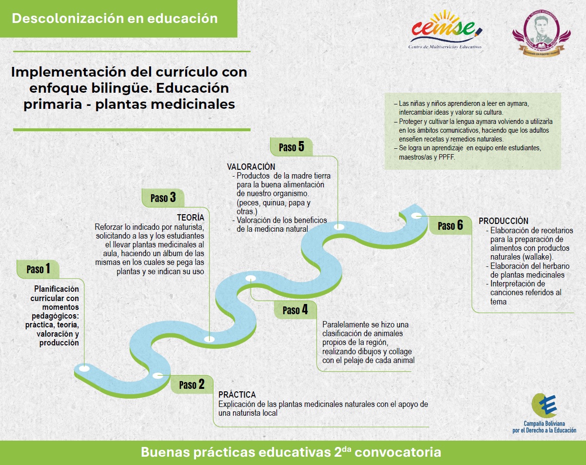 “Promoviendo el derecho de niñas, niños y adolescentes de pueblos indígenas originario-campesinos a educarse en su propia lengua, cultura y con igualdad de género en un contexto de recuperación justa post-pandemia Covid-19 en 6 regiones de Bolivia” – Implementación del currículo con enfoque bilingue. Educación Primaria – Plantas medicinales U.E. Germán Busch I – 4to año de escolaridad, El Alto
