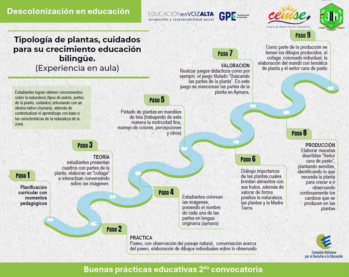 “Promoviendo el derecho de niñas, niños y adolescentes de pueblos indígenas originario-campesinos a educarse en su propia lengua, cultura y con igualdad de género en un contexto de recuperación justa post-pandemia Covid-19 en 6 regiones de Bolivia” – Implementación del currículo con enfoque bilingue. Educación Inicial en Familia Comunitaria – Vida tierra y territorio U.E. Juvenal Marica «A», El Alto