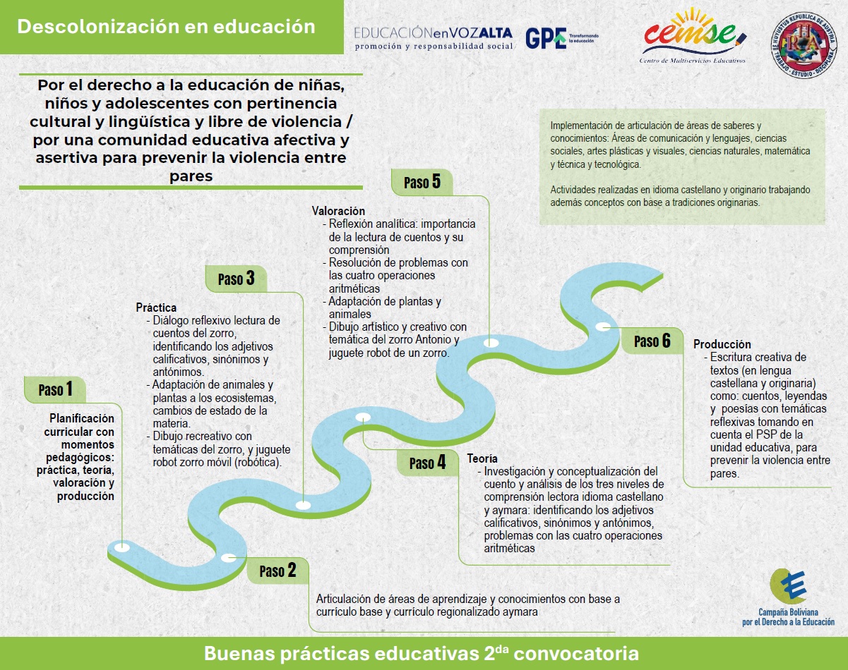 “Promoviendo el derecho de niñas, niños y adolescentes de pueblos indígenas originario-campesinos a educarse en su propia lengua, cultura y con igualdad de género en un contexto de recuperación justa post-pandemia Covid-19 en 6 regiones de Bolivia” – Implementación del currículo con enfoque bilingue. Educación Primaria – Plan Social Productivo POR UNA COMUNIDAD EDUCATIVA AFECTIVA Y ASERTIVA PARA PREVENIR LA VIOLENCIA ENTRE PARES . U.E. Huyustus República de Austria- 4to año de escolaridad primaria, El Alto